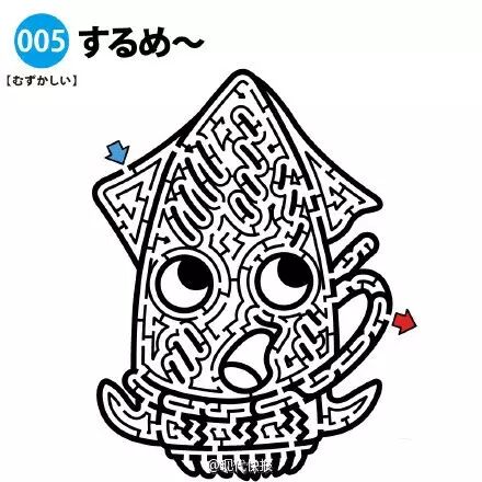日本有一个超爱做迷宫的人叫做“MeiroJP”,每天都在画迷宫,9张图你能到哪里?建议家长打印出来陪孩子一起玩儿,蓝色箭头是入口,红色箭头是出口哦!