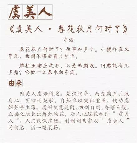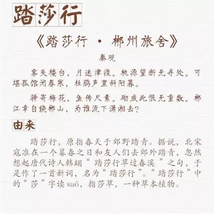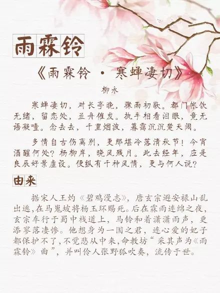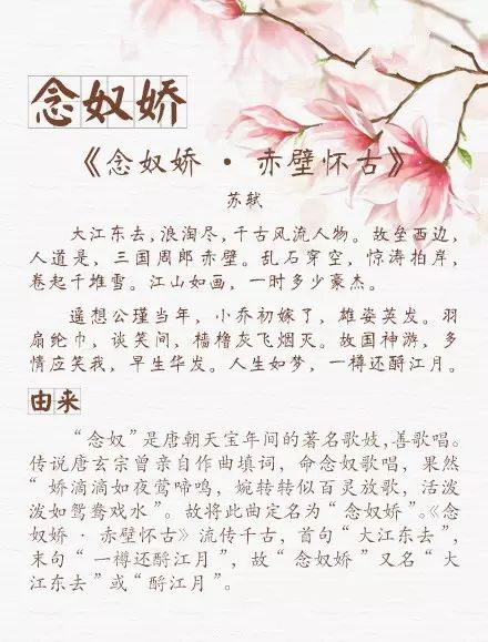 苏轼一首《念奴娇》流传千古,可你知道“念奴”是谁吗?柳永一曲《雨霖铃》凄婉动人,可你知道“雨霖铃”最初是唐玄宗在雨夜哀叹自己无法保护杨贵妃吗?“踏莎行”的“莎”还在读shā?…看完这些,是否觉得多年语文白学了?
