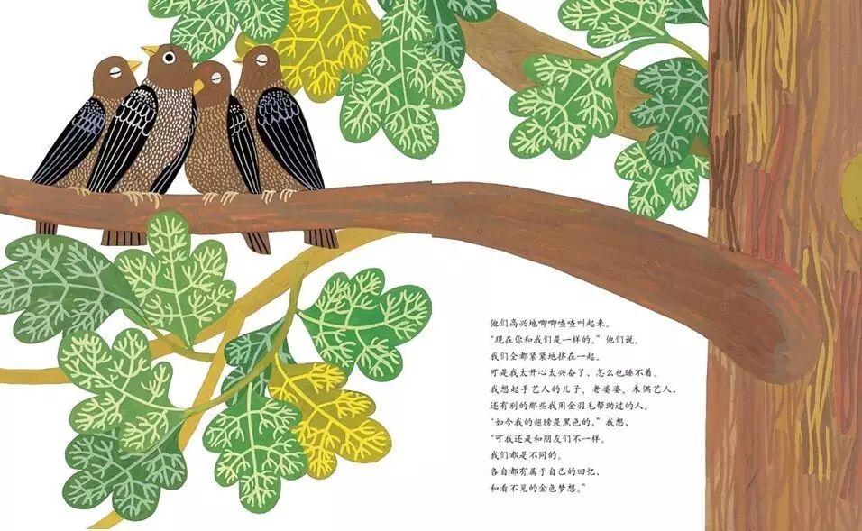 最终小笨鸟变成了一棵会开花的树,他笨笨的鸟生迎来了迟来的绚烂。牛老师用素材在无声间解释了她的问题。