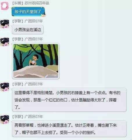 嗯,小男孩可是不会放弃的,他说过他一定要捉到。看他,一手摸着受伤的膝盖,一边往树上看发现了