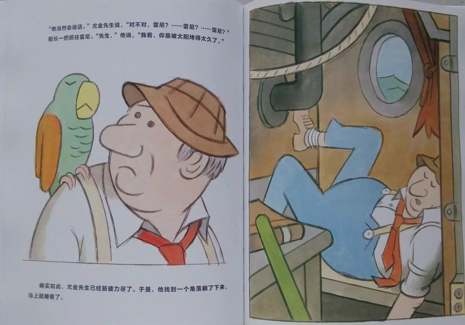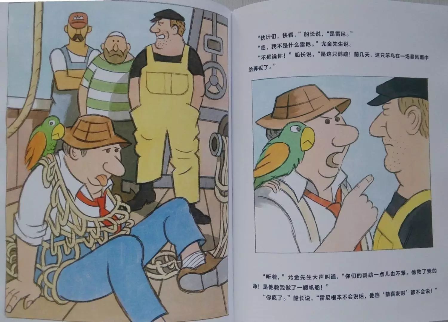 除了一只鹦鹉。雷尼!尤金先生大叫,你们的船刚刚离开,你在等什么?你。雷尼跳到尤金先生的肩上,猜一猜,尤金先生说了什么?你们都看懂这本书了!