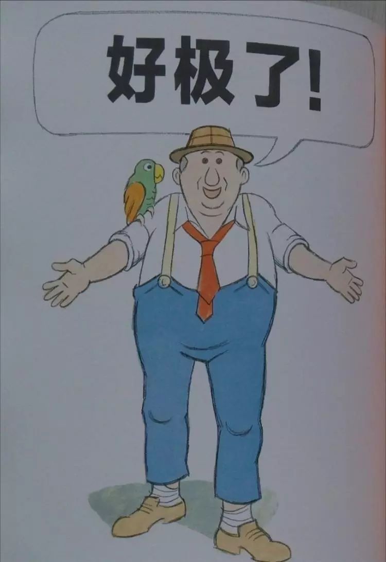 这回的“好极了”还是反语吗?看这幅图的时候,突然觉得一直笼罩在头顶上的乌云消散了,春风和煦,阳光普照。为什么?因为一直抱怨的尤金先生终于吐露了正能量,而且他还——笑了!