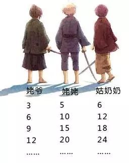 它们都是3、 5、 6的公倍数。姥姥、姥爷和姑奶奶在这样的天数都会三个人一起齐刷刷地现身!