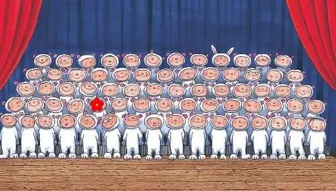 哪位麻麻给描述一下,合唱团里那位兔子耳朵小盆友的位置