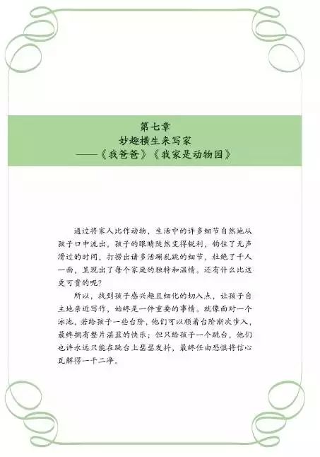 在考虑书的定位和文风,以及参考同类作品风格的情况下,我和美编以及同事沟通之后,确定了整本书的浅豆绿色背景。而且,在每章开头、孩子的作业部分、延伸阅读部分,都单独做设计。