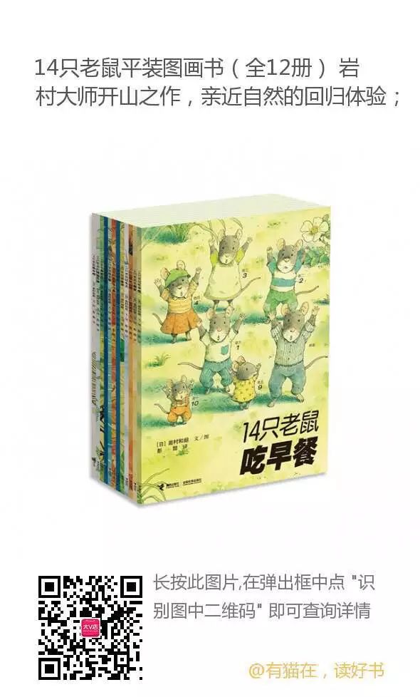 把时间浪费在足够美好的事物上,给岩村和朗带来了回报,更给全世界的读者带来了一份大礼。《14只老鼠》几乎是万能的,它可以教孩子识数,锻炼孩子观察,自然地带领他们认识万物,感受生物存活的艰辛和家庭中流淌的脉脉温情。