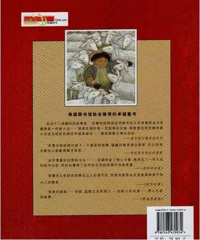封底与封面一致,同样是红色打底,一张安娜穿着蓝色大衣搂着羊羔的照片。封面的照片和封底的照片是什么关系呢?封底为什么放一张安娜搂着羊羔的照片呢?
