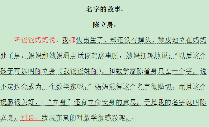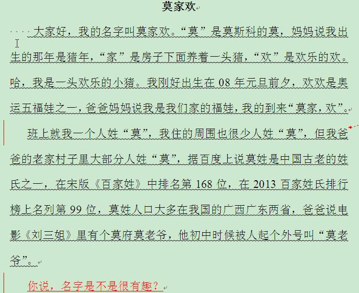 整篇文章洋溢着浓浓的人情味,姓名背后的爱和期待体现了出来。