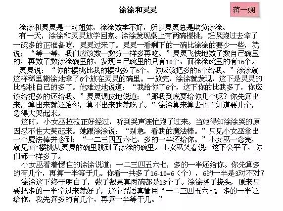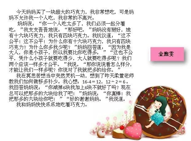 “移多补少”的数学故事。可见小朋友们的观察是那么仔细,文笔是那么优美。