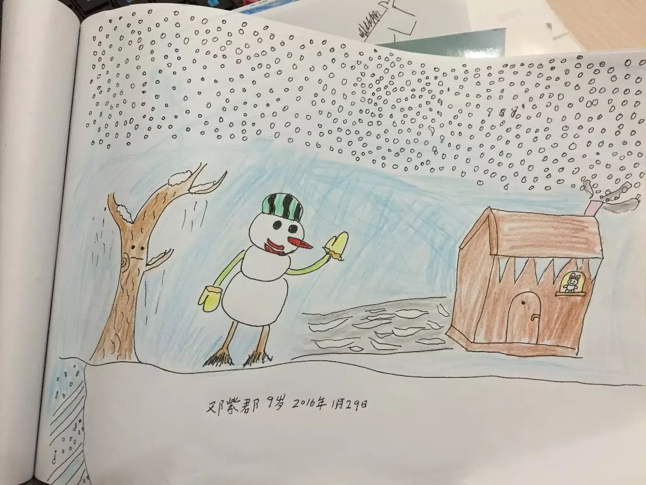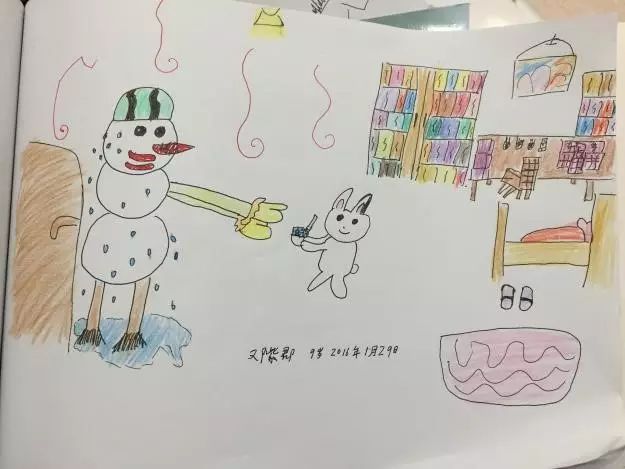 邓紫郡给我们描述了一只可爱的兔子,他的雪人到家中做客。屋里太暖怎么办,吃点冰块吧我的朋友。哈哈,温馨ing~