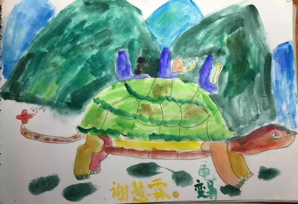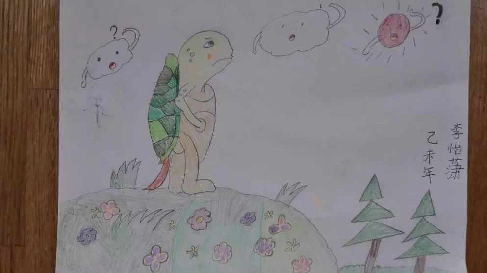 它为什么而烦恼?整幅画的各种事物都发出了疑问,答案只有乌龟自己知道。李怡潇的画,画出了乌龟的苦恼,也画出了别人的疑惑。画画注重的不仅是画面,还是情感的表达。