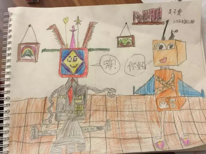 第三次为《机器人》,机器人朋友着重训练孩子几何造型组合与场景描绘的能力。