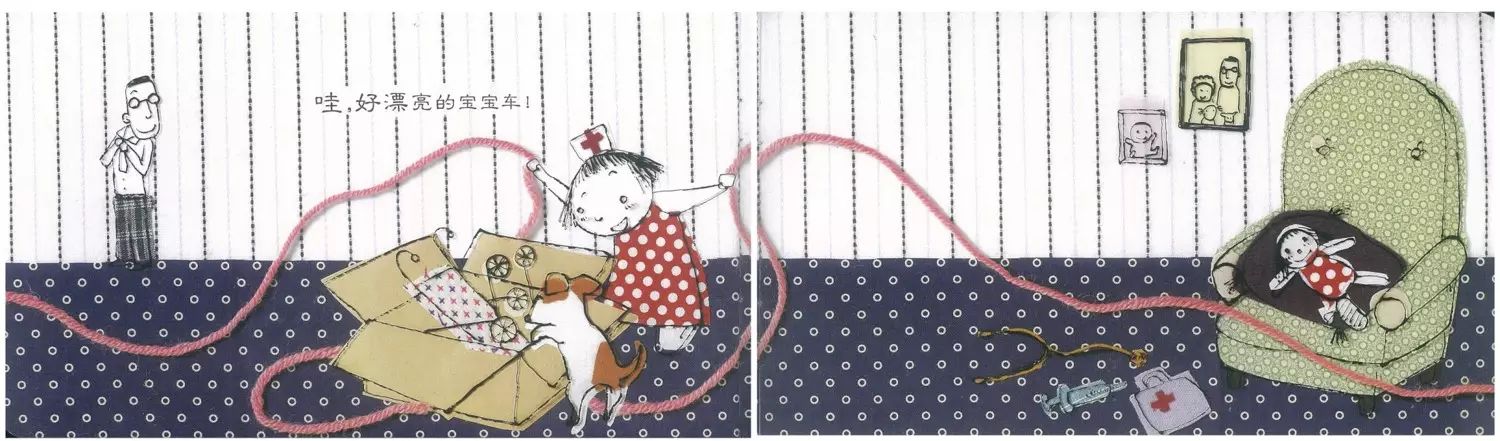 10、爸爸回到了家,还给红红的布娃娃买了手推车和衣服,红红高兴的不得了,还和布娃娃玩起了护士游戏。