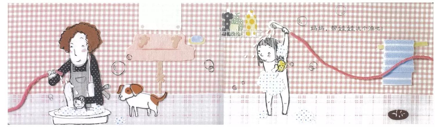 7、妈妈看到了并没有生气,还帮布娃娃洗澡。布娃娃说:我这么久都没洗澡了,这次终于可以快快乐乐洗个澡了,谢谢红红妈妈,谢谢你把我洗的这么干净。红红一边洗澡一边想:哇,我和布娃娃一起都在洗澡呢!