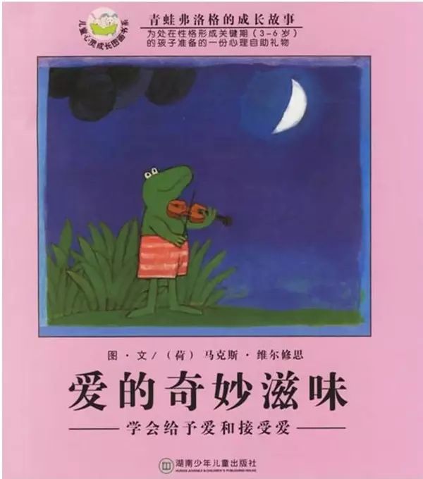 青蛙弗洛格系列。自己对于内心感受的一个认识过程。弗洛格向小猪、野兔描述自己的感受、变化,描述的很细,这对于孩子倒是挺有帮助的,把自己感受到的、未知的东西细致的表达出来,一来是个梳理的过程,二来也能让别人帮着做个判断,这里博学的野兔,通过他的描述总结出弗洛格恋爱了。这就像心理咨询一样,某些问题,给了个名称就解决了。弗洛格一下子就雀跃了,飞跳到小猪面前,完全处于兴奋状态,甚至还没想过自己到底是爱上谁了呢。后面是他为了爱采取的行动,画画、送花,可是他却不敢见小鸭子。最后想的一招是要破世界纪录,结果摔伤了。恋爱中的人总是会做些傻傻的举动啊。最后还好,小鸭子给了他无微不至的照顾,最终他们彼此深爱。主题还升华到爱是不受肤色限制的。看来童书中还蛮喜欢讲非同类的爱情的,可能是让孩子有一个包容博爱的心吧。