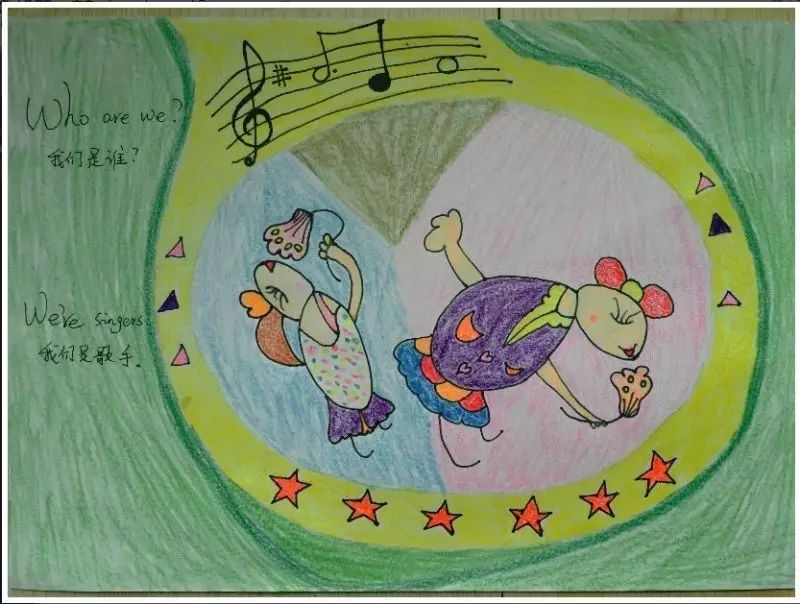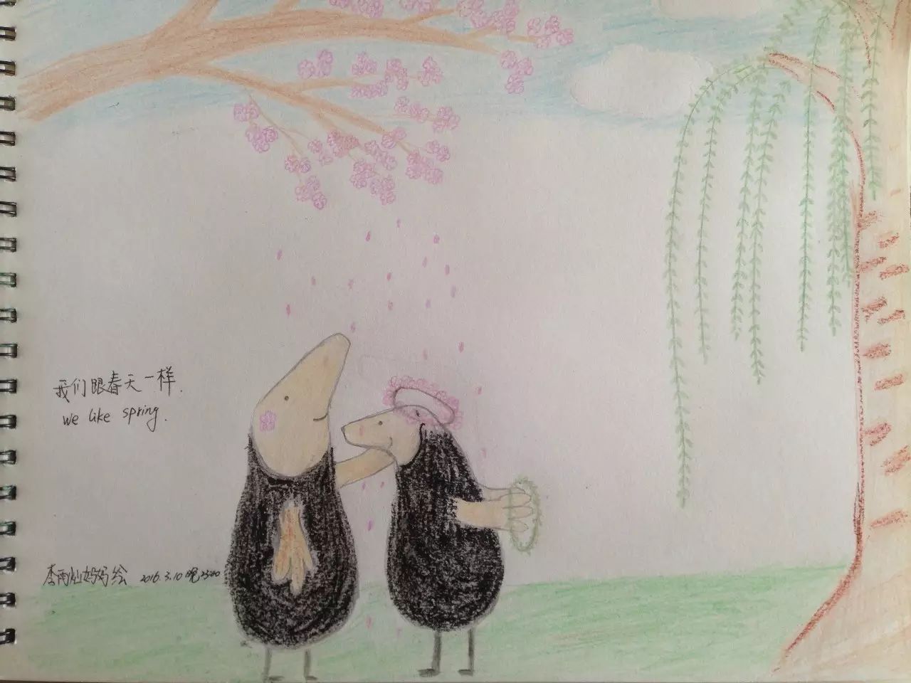 一幅为爸爸所画,星空下的鼹鼠!一幅为春天里的鼹鼠,妈妈与崽崽合画!读书时就非常羡慕那些会画画的同学,却总是不敢下笔!周末在听完“一生一刻一书”中老师讲座之后就一直蠢蠢欲动,好似激发了童年的记忆!”