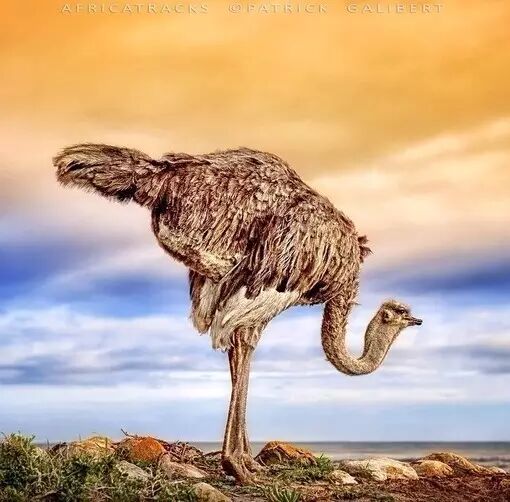 鸵鸟是“鸟”,他没有轻巧的身子和能飞翔的翅膀,但他有两只健壮发达的后腿,它一步就能跨出六米左右,遇到天敌,飞一样逃走。它靠着这个优点在沙漠中生活了下来。
