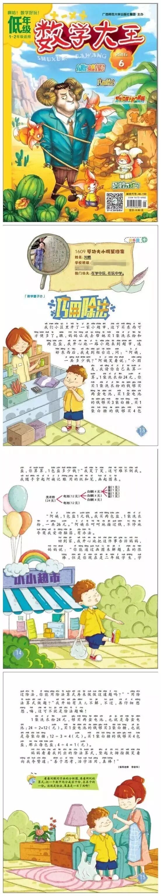 “魔法学院”绘本数学学员刘燃(二年级)作品《巧用除法》发表于《数学大王》。