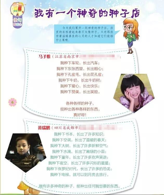 马子惟(二年级)、黄瑞鹏(三年级)作品《我有一个神奇的种子店》发表于《开心阅读与作文》。