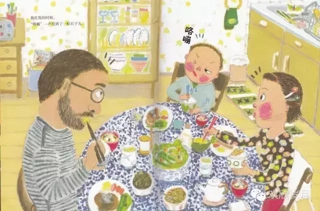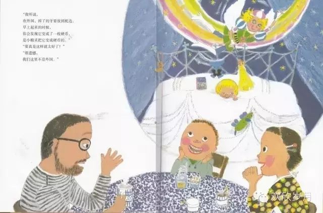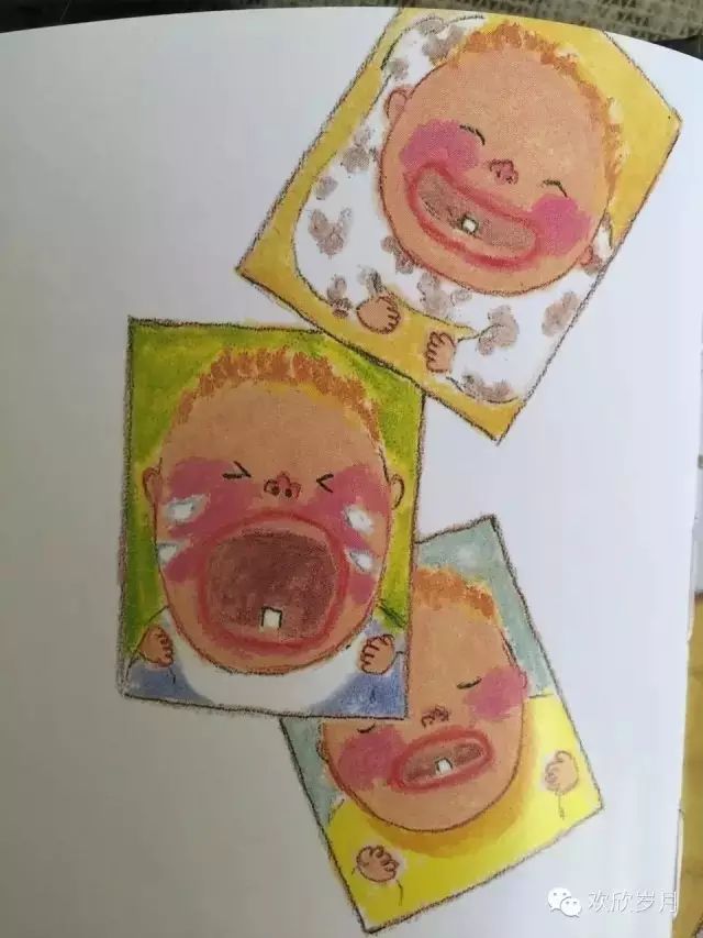 爸爸还科普了“乳牙”与“恒牙”的知识.你看图画上,爸爸妈妈与小孩子说话与思想不是一个频道,就像《莎莉,离水远一点》。爸爸提到爷爷的假牙,似乎想到年迈的父亲和自己的将来,神情有些凝重。
