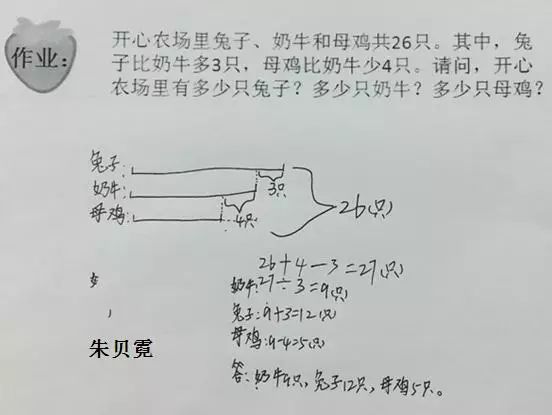 每次上课听到金煦雯小朋友甜美的声音,再看到这样整洁的作业、秀丽的字迹,深深体会到“字如其人”的感觉。从上面不难看出,金煦雯小朋友的解题思路非常清晰。而且特别值得一提的是,金煦雯小朋友特别注意到了细节,注意到了画图和解题过程的融合,把解题过程中得出来的结果标注在图上,看上去更显直观。