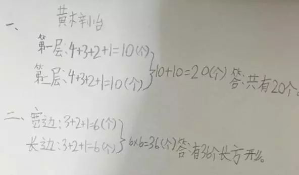 黄梓怡小朋友每次都默默地早早交作业,每一次作业都那么工整,每一步都写得那么有条理。在数图形的作业中,数长方形是难点,包含了“数长方形”和“数线段”间的转换,但黄梓怡小朋友一样思路清晰,不急不躁,让人看了豁然开朗。