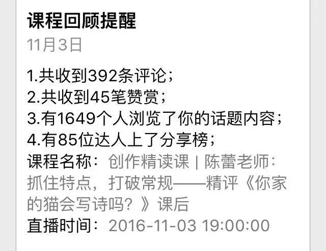昨晚,陈蕾老师创作精读课——《你家的猫会写诗吗?》拉开了拙原千聊直播间的帷幕。陈蕾老师以孩子原汁原味的创作,激活小听众们的创作热情。课程热烈火爆,结束时,有小朋友连在直播间讨论区里道:不能不能,还想再听一遍。