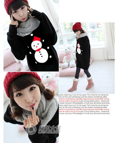 搭配tips:俏皮的卡通图案不再是小少女们的专属,长毛衣配甜美的粉色雪地靴,别担心被说“装嫩”,穿起来可爱才是王道。