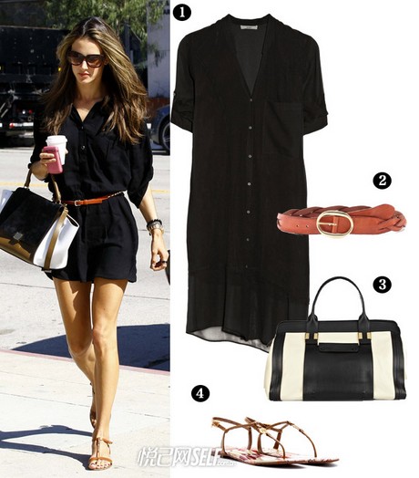 时尚解析:亚历山大-安布罗休身穿黑色衬衫连衣裙,休闲的风格搭配平底凉鞋最适合夏季的出街装扮,腰带的点缀更能显示身材比例,同时也更显女人味。