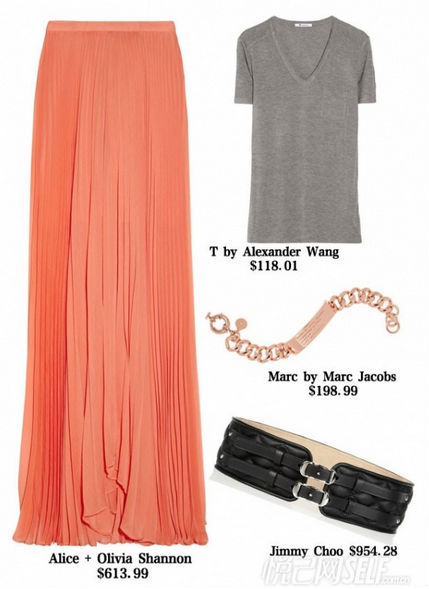 推荐搭配一:亮色薄纱半裙搭配。