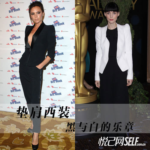 悦己编辑告诉你:垫肩款式的连衣裙绝对是王者之选!像章子怡这样的黑色皮质拼接包身裙,配合简单直发潇洒帅气,而艾玛·斯通的白色镂空连衣裙映衬白肤,公主肩的款式又增添了几分清纯之感。