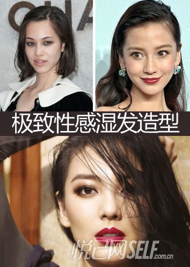 这种发型不仅有一种慵懒的味道,还给人一种极致的魅惑感,于是女星们为了比拼性感、美艳,纷纷选用了湿发造型来博眼球。