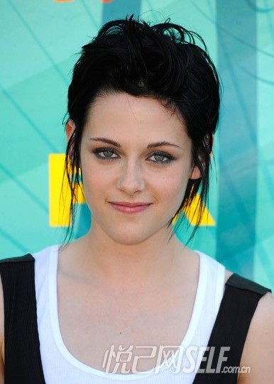 一头男孩子般的短发怎样才能打造出性感的感觉呢?想斯图尔特一样将整个刘海向上倒梳并制造出湿发的感觉。