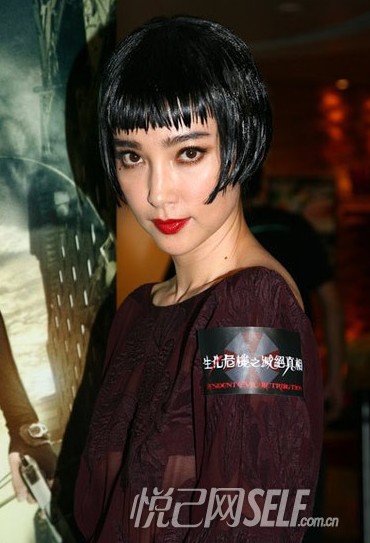 黑色的齐刘海BOBO头本身是可爱的发型,李冰冰将它与湿发联系在一起,变身未来女战士的感觉。