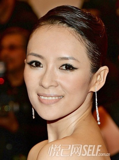 盘发与湿发的配合将章子怡大气女人的风范展露出来,闪闪发光的头发将是闪光灯追逐的焦点。