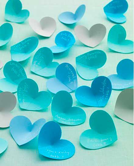 可以选择制作类似的异形小卡片,挑选自己喜爱的颜色及形状,供给来宾现场签写对你们的祝福。在抛洒花瓣雨环节可以替代花瓣,也可以作为回礼抽签卡使用。