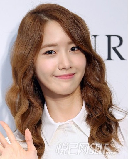 甜美乖巧的允儿很适合俏皮的卷发,中长度的头发显得轻巧、秀气,金棕色发色也衬托出娃娃般白皙通透皮肤。