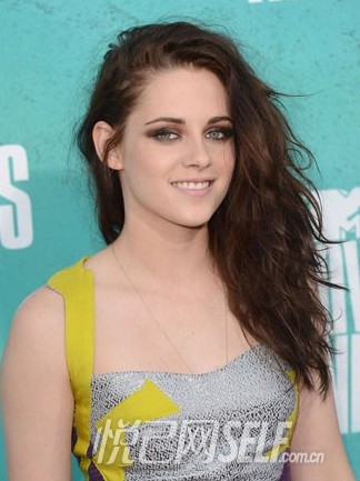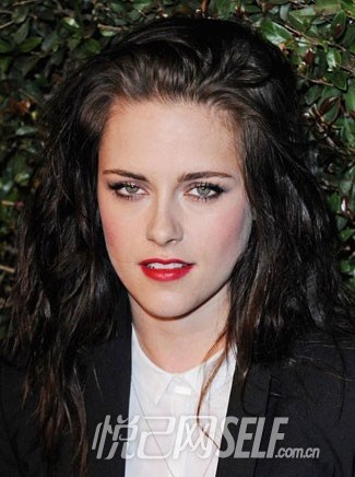 大烟熏搭配亚光裸唇,再加上这个好似被雷劈过的头发,整体看上去刚刚发生过什么大劫难一样。看来Kristen十分喜爱乱发造型,可是不见得每回都那么成功哟。