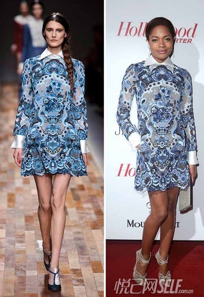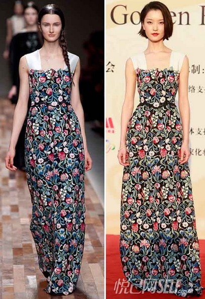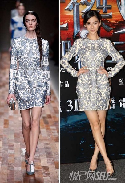 收腰款式展露了Angelababy优美的身材曲线,中国风浓郁的青花瓷款式透露着古朴的韵味。