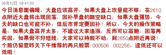 对大盘,目前我仍坚持前期观点,早盘主要提示如下: