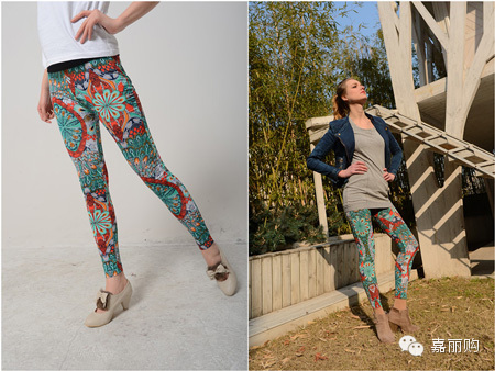 米娜孔雀异域风情打底裤。色彩丰富艳丽层次分明,彰显时尚气质。
