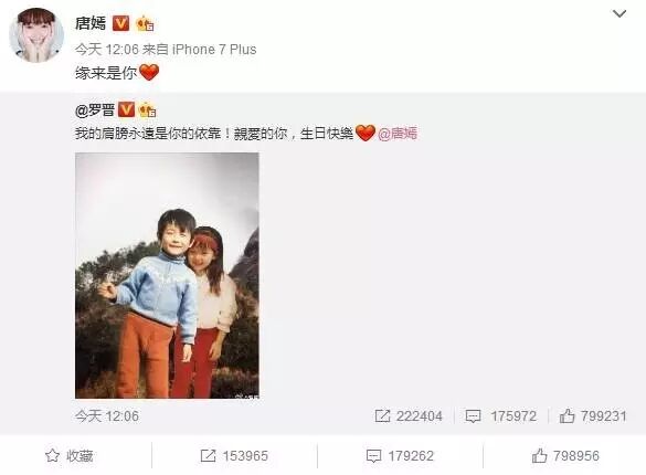 在前两天,更是有一条唐嫣的甜蜜喜讯!罗晋在微博上晒出了唐嫣的照片,配文是:“我的肩膀永远是你的依靠,亲爱的你,生日快乐。”唐嫣回复:“缘来是你。”