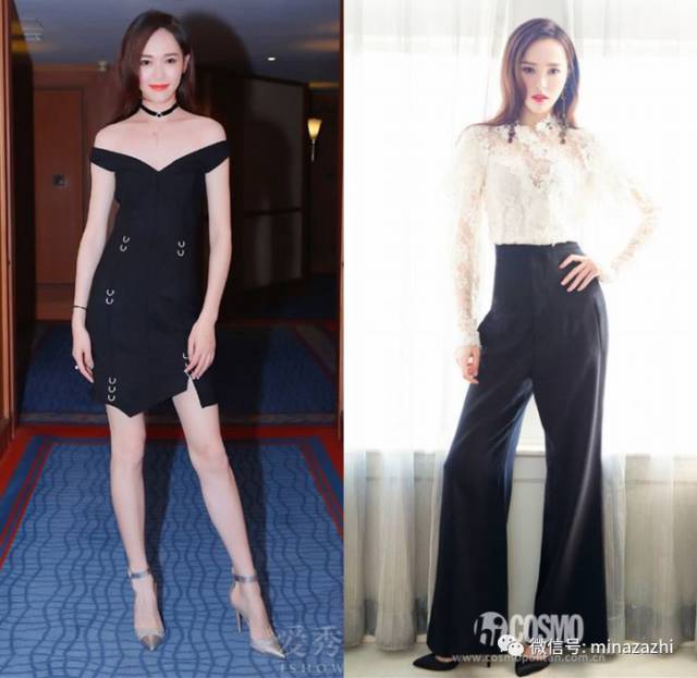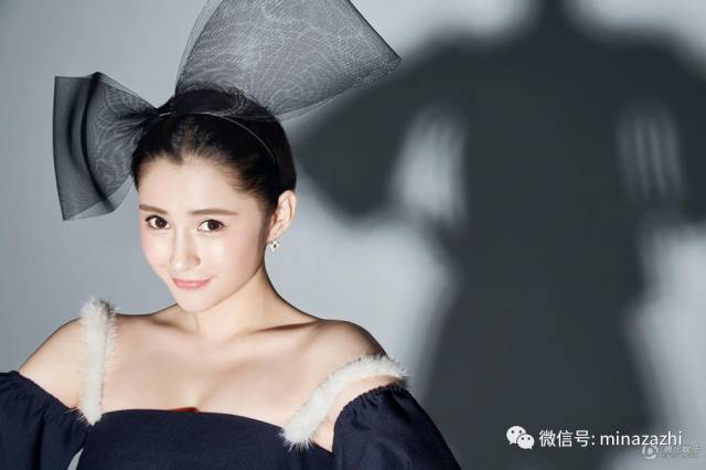 脱下厚重的古装戏服,身穿修身小礼服微露香肩,清冽锁骨俏皮性感,妩媚动人。