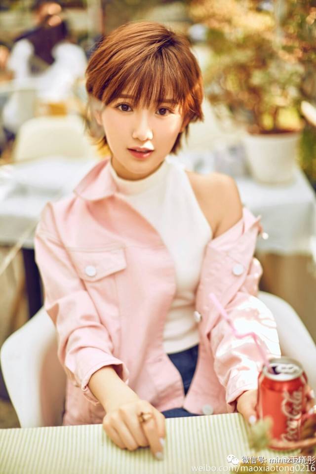 短发很考验一个女人的实力,天生就是巴掌大的小脸毛晓彤,任何发型都驾驭的很不错。