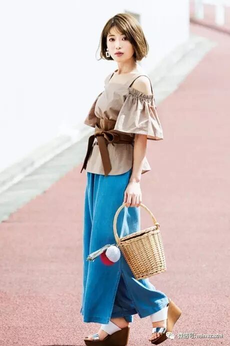 对于个子矮的女生来说,在夏日一定不能穿得层次丰富,给人厚重的感觉!可以用轻盈飘逸的短上衣穿出仙气迷人的轻盈感,自然看上去会高一点!同时还可以选择露肩的单品露出修长的脖颈,脖子长了也会显高哦~(Sherry)