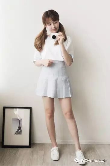 对于小个子mm而言,高腰短裙可是必不可少的显高神器!搭配一个白T,可爱又减龄~
