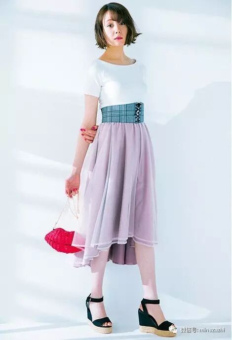 如果打破膨胀的单品显矮的魔咒?在胸以下束一个腰封吧!分割身材成为黄金比例。