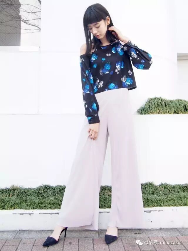 还有腿短女生比较关心的是:能不能穿阔腿裤?当然可以!只要选择了高腰的款式,搭配修身的上衣,自然营造出纤细骨感的大长腿,身材一级棒!(Sherry)