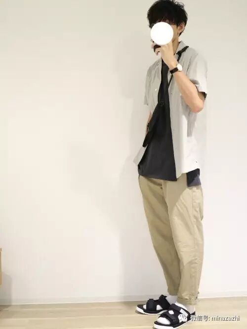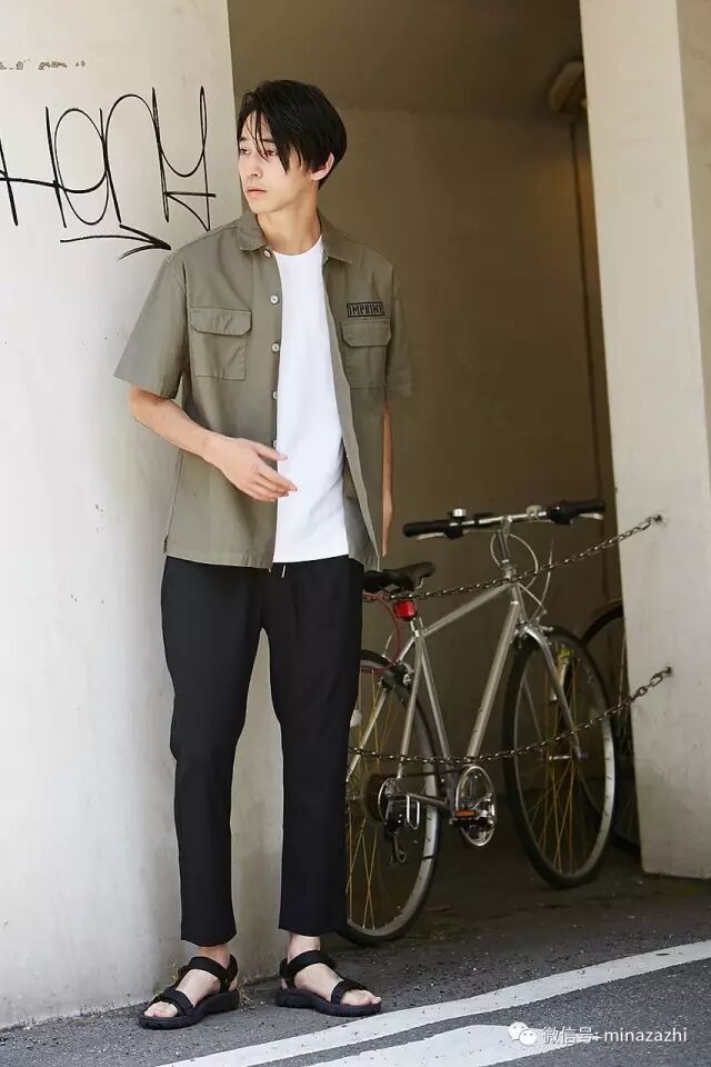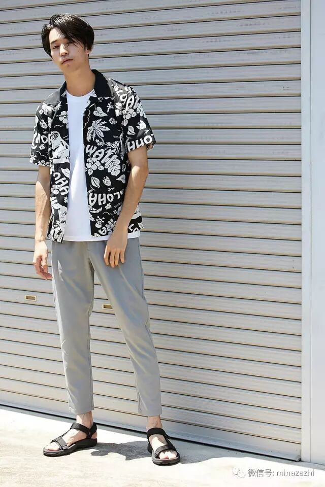 充满热带元素的衬衣在夏天很受欢迎!出其不意地选择了黑色为底色强调了一种低调的酷感,搭配白色内搭和灰色裤子,整体的基调就是冷冷帅帅的感觉。