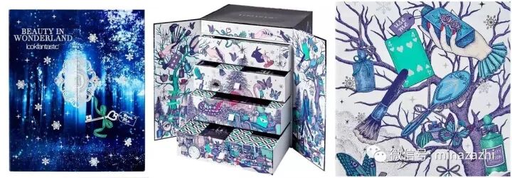 除了各大美妆品牌,美妆购物网站也会推出专属于自己的圣诞日历。这是17年Look Fantastic网站的日历,做成了抽屉形式,外观也很梦幻唯美。